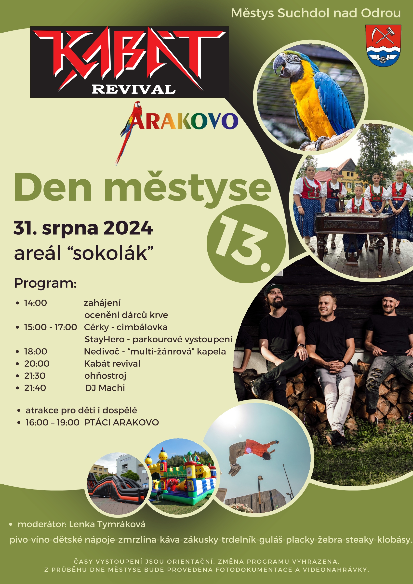 Den Městyse Suchdol na Odrou se koná v sobotu 31. srpna 2024 v areálu Sokolák s doprovodným programem.
