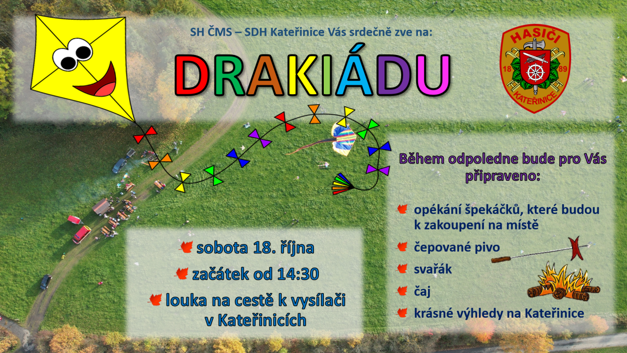 V sobotu 18.10. od 14:30 hodin na louce u cesty k vysílači se uskuteční hasičská Drakiáda.