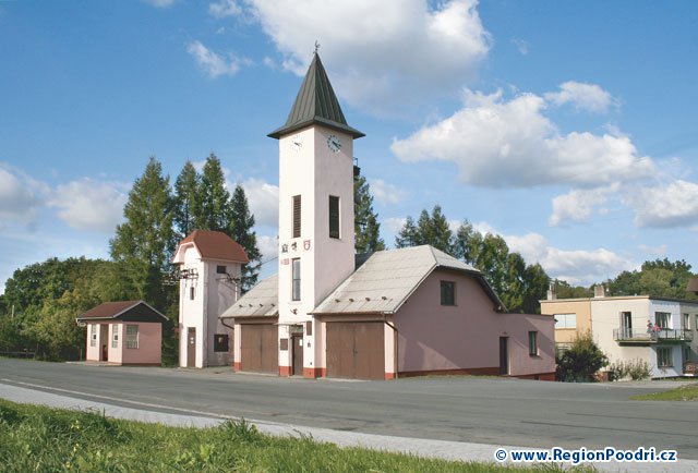 Hasičská zbrojnice s věžními hodinami - nově zrekonstruovaná věž.